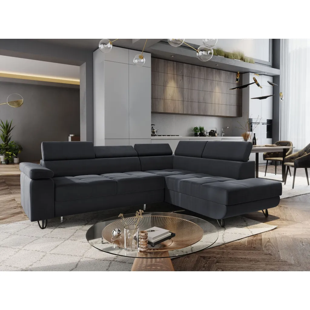 A compact and functional JUNIOR corner sofa, perfect for modern interiors. Designed to make the most of your space, it features: