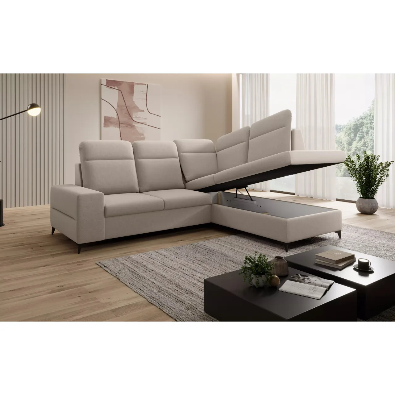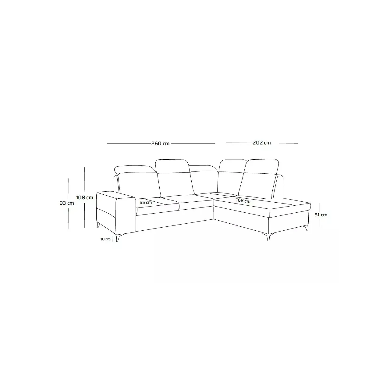 The Lorena L corner sofa stands out with its unique backrest design and adjustable headrests, ensuring personalized comfort tailored to your needs.
